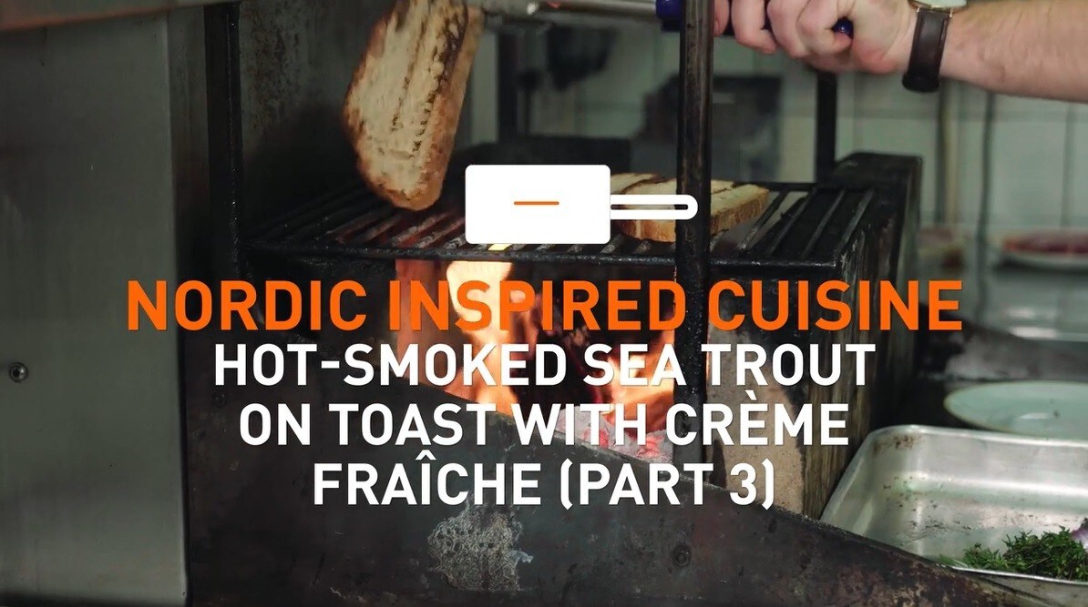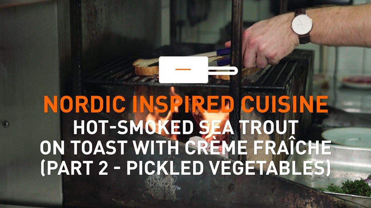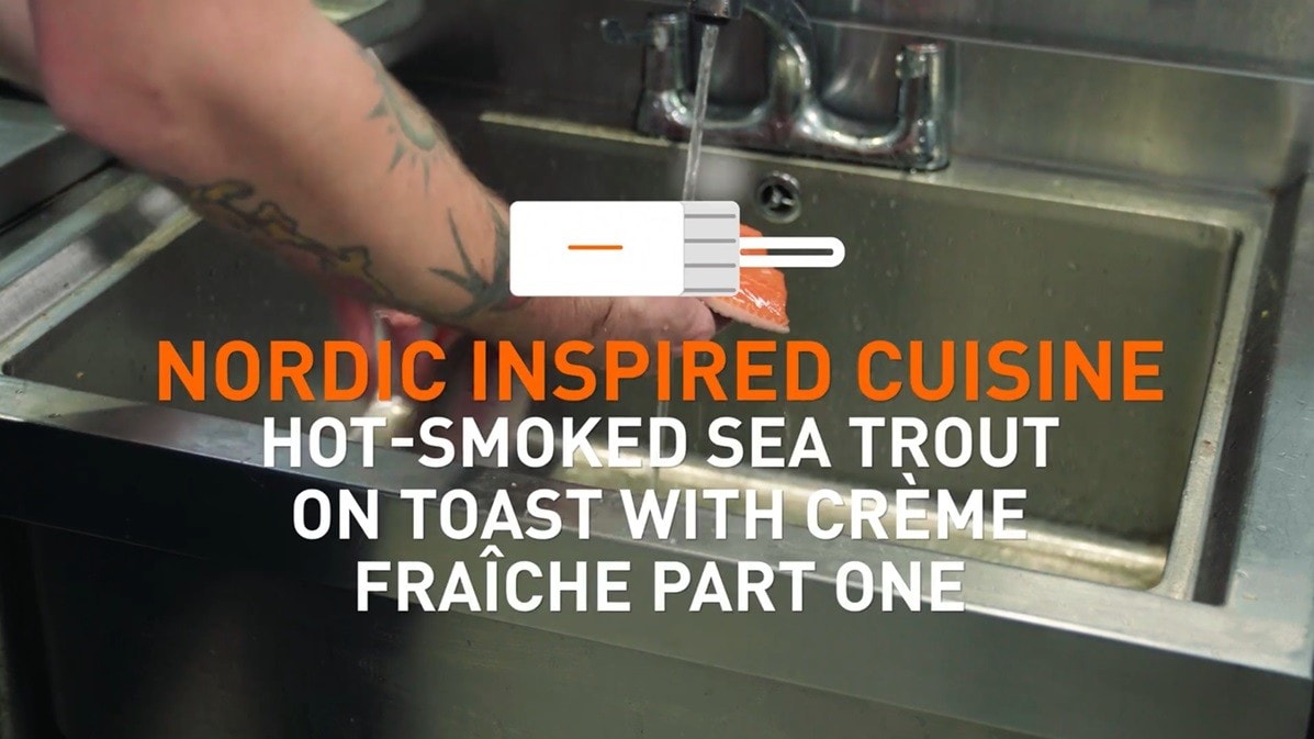 El chef Young nos ofrece los mejores consejos e instrucciones para simplificar e inspirarnos con su primer plato: tostada de trucha ahumada en caliente con creme fraiche. Primero vemos cómo se cortan los filetes del pescado y después nos guía por la técnica del semicurado y el proceso de ahumado en caliente. También aprenderemos a preparar el líquido para encurtir que se utiliza para conservar verduras frescas.