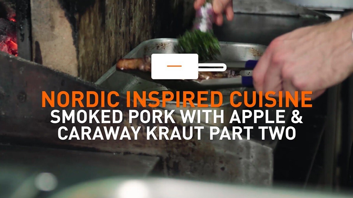 Empieza el segundo plato: cerdo ahumado y chucrut de manzana y alcaravea. Aquí, el chef Young te enseñará un proceso especial de salmuera para curar y humedecer la carne de cerdo antes de embolsarla al vacío, prepararla en un baño de agua y ahumarla. Perfecciona las técnicas, los métodos y los secretos del ahumador.