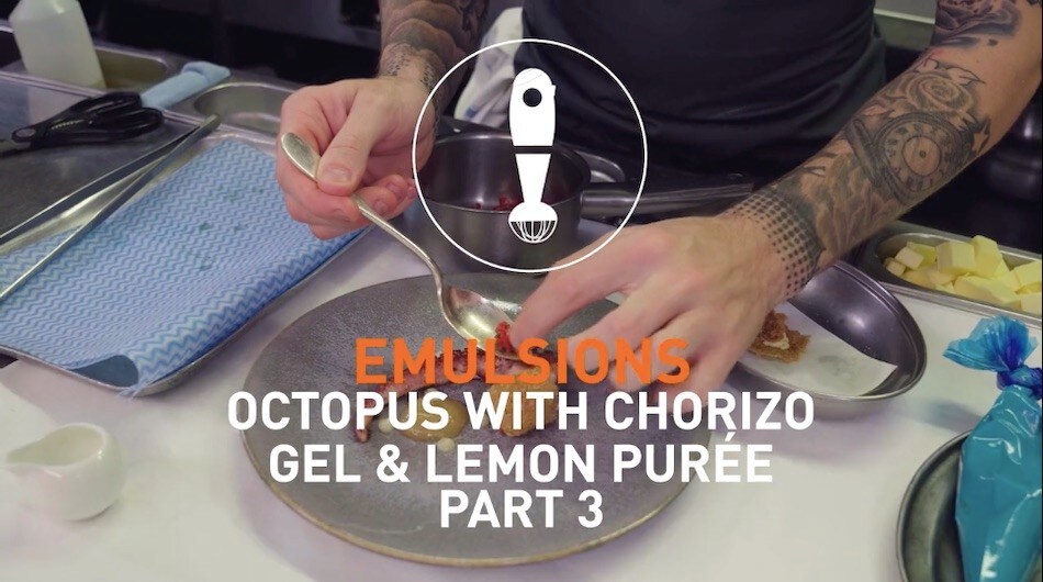 14. Emulsiones y gelificaciones - Pulpo con gelificación de chorizo y puré de limón parte 3