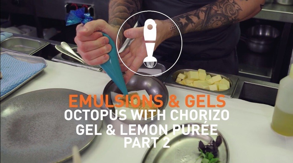 13. Emulsiones y gelificaciones - Pulpo con gelificación de chorizo y puré de limón parte 2