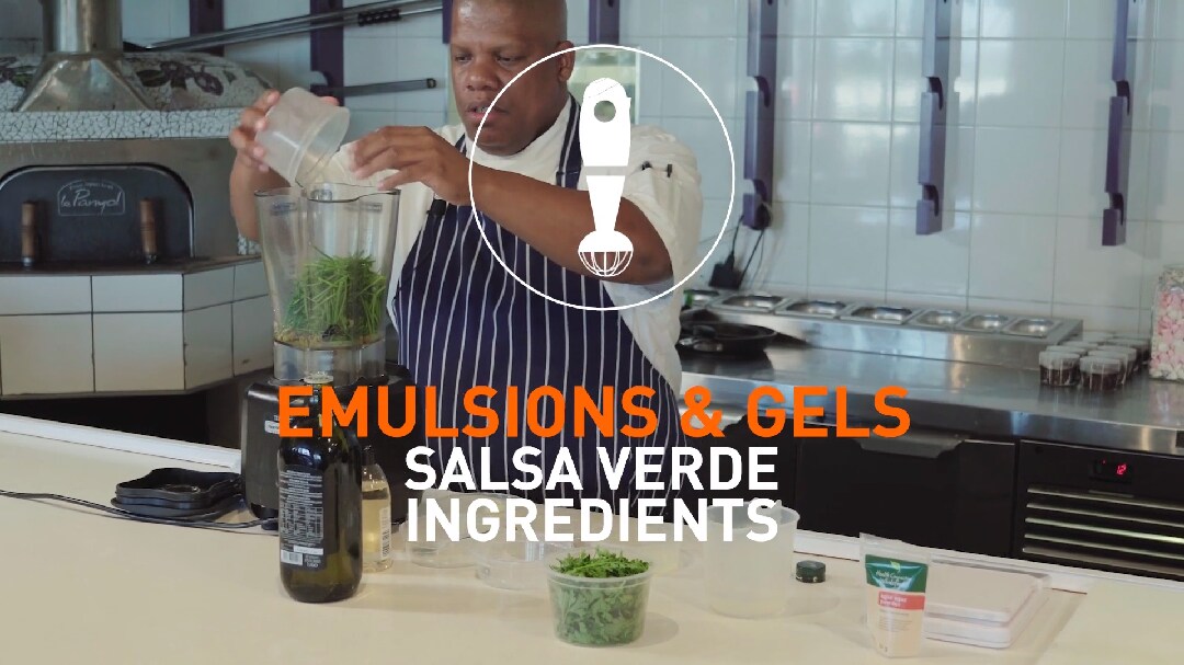 Usando agar-agar, jugo de naranja, pasta de vainilla y jarabe simple, el Chef Duiker comienza el gel de naranja. Aprende a crear la base para la emulsión de cítricos y pasa a la parte 2 para completarla.