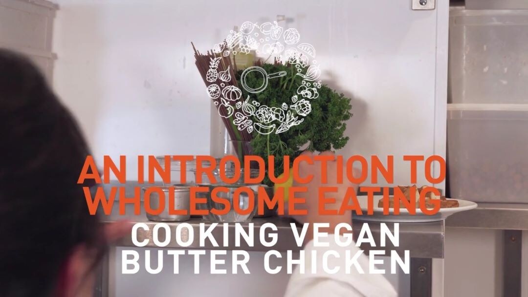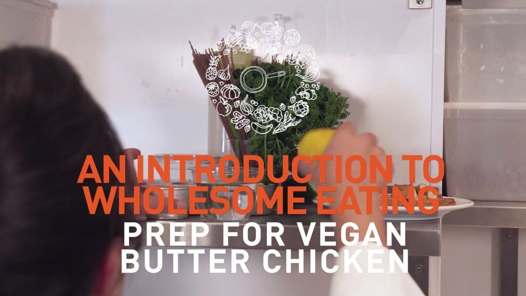 Mira cómo la chef Andria Wu cocina el pollo con mantequilla vegano con una salsa cremosa de especias sobre una coliflor al horno y el toque fresco de hierbas y piel de cítricos.