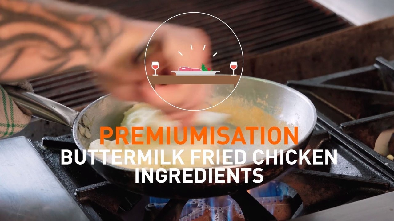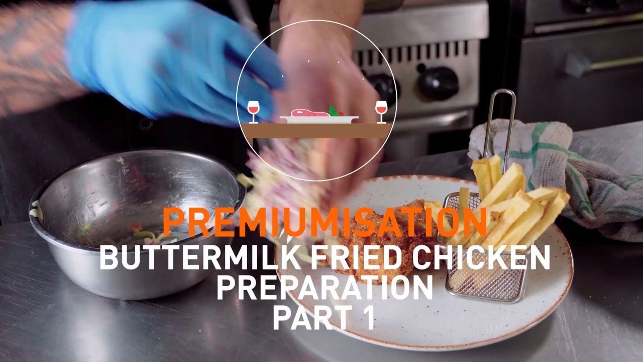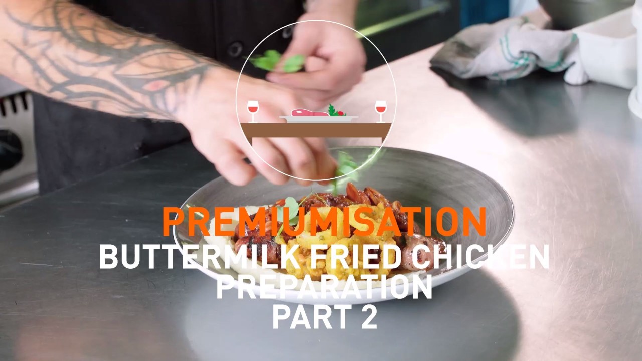 El chef Dietrich, jefe de cocina de The National en Johannesburgo, nos presenta la “premiumización”, el concepto de preparar algo delicioso con ingredientes cotidianos. Prueba con dos platos: salchichas con puré de papas y pollo rebozado en suero de manteca con papas fritas.