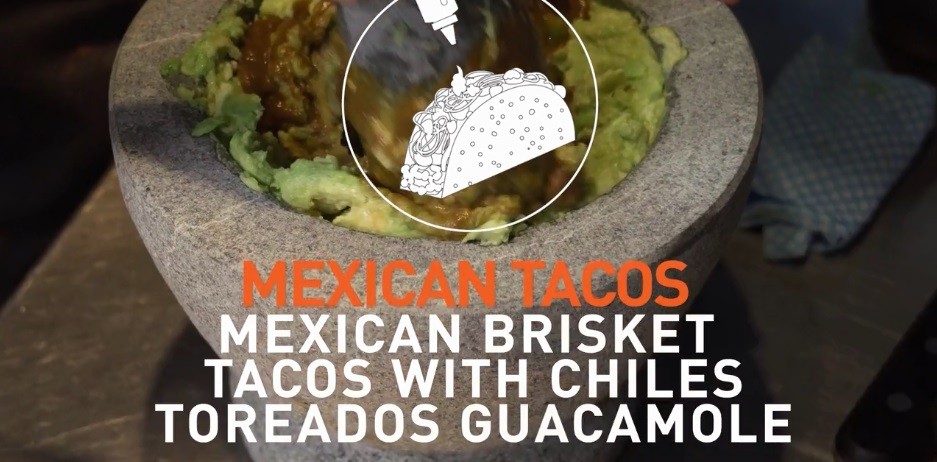 Remata tus tacos de brisket mexicanos mezclando los sabores del guacamole de toreados con brunoise de tomate y rodajas finas de cebolla. Aprende a desmenuzar un brisket de ternera y a combinarlo con el jugo de la carne para lograr un plato con un sabor increíble.